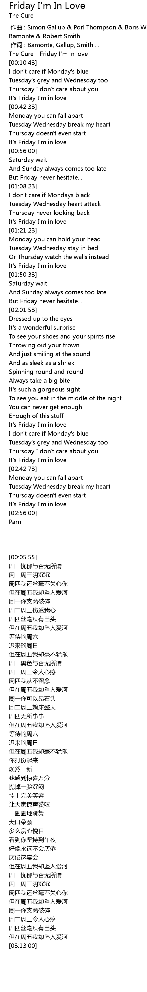 | [00:05.55] | The Cure Friday I' m in love |