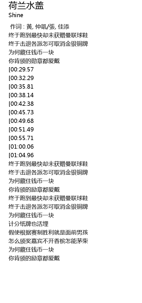 | [02:03.58][00:49.68] | 所有奖牌 |