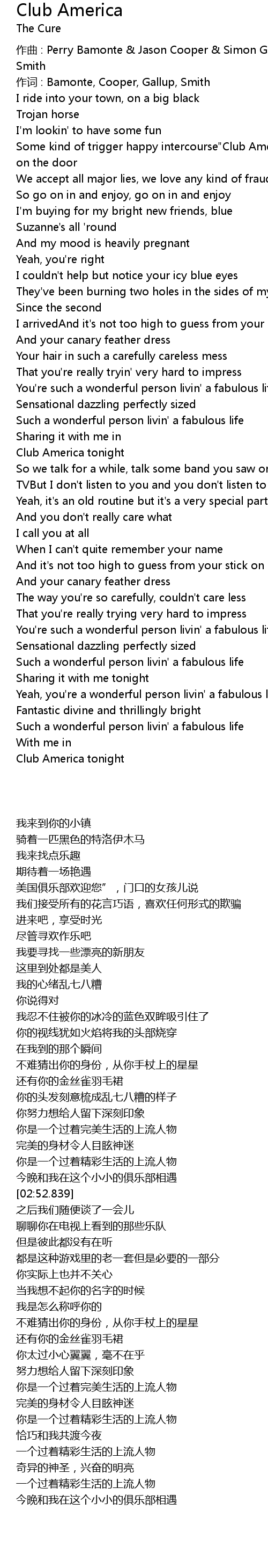 | zuò qǔ : Perry Bamonte Jason Cooper Simon Gallup Roger O Donnell Robert Smith | |