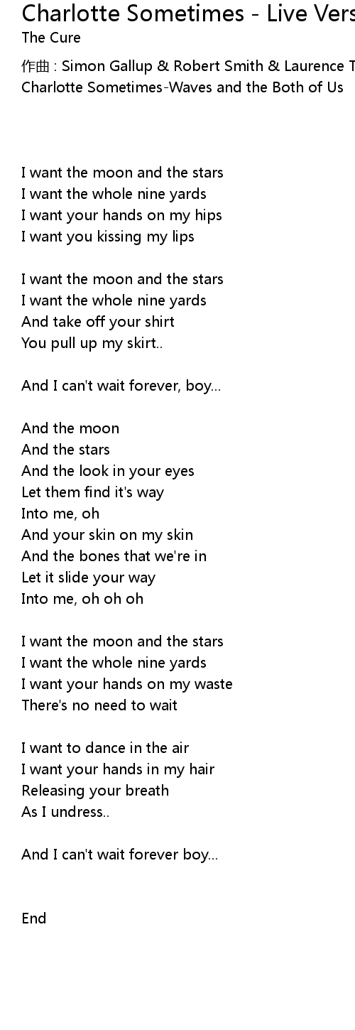 | 作曲 : Simon Gallup & Robert Smith & Laurence Tolhurst | |