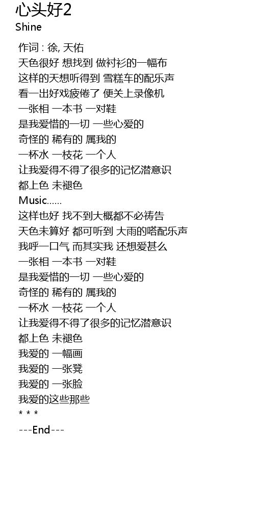 | [00:00.00] | 作词 : 徐, 天佑 |