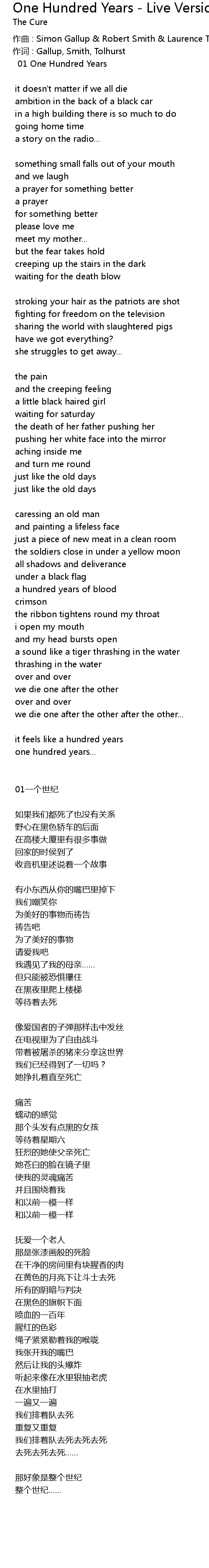 | zuò qǔ : Simon Gallup Robert Smith Laurence Tolhurst | |