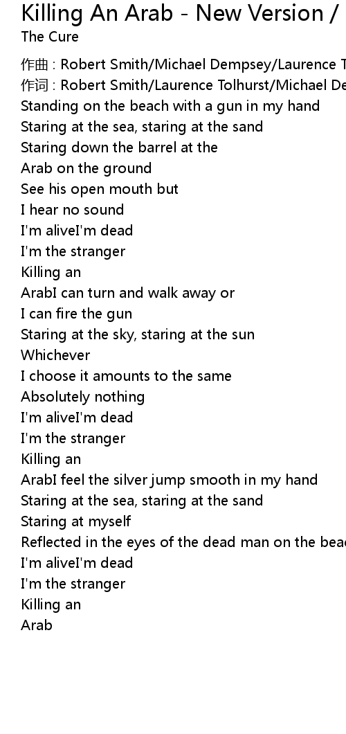 | Song | Killing An Arab - New Version / Live Version (1984) |