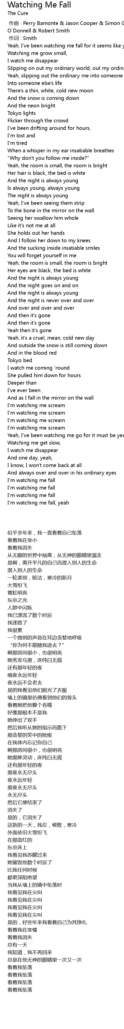 | [00:00.00] | 作曲 : Perry Bamonte & Jason Cooper & Simon Gallup & Roger O`Donnell & Robert Smith |