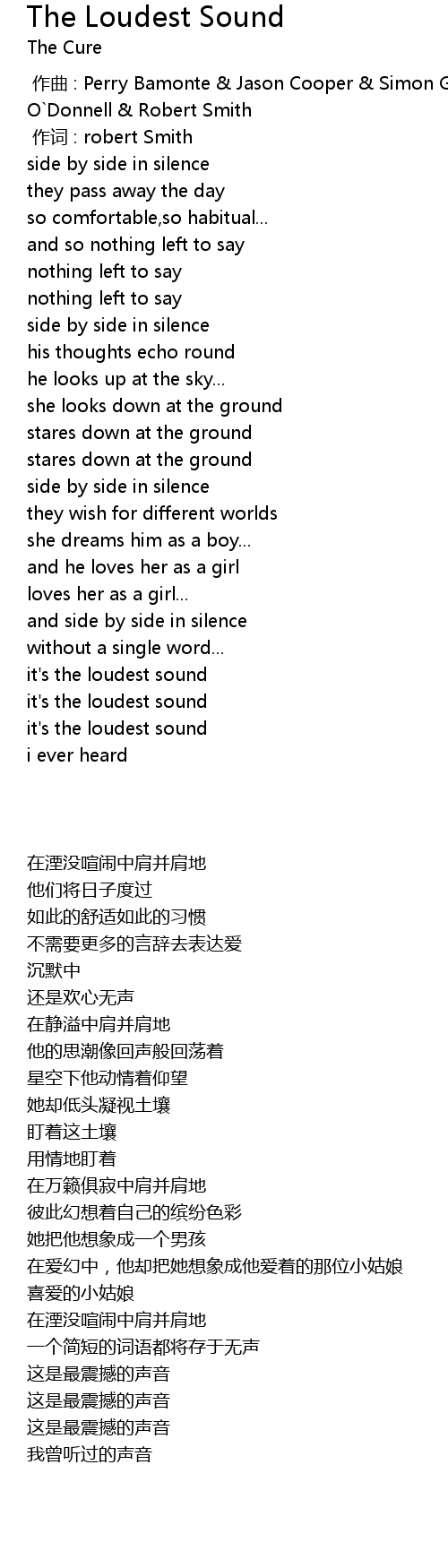 | [00:00.00] | 作曲 : Perry Bamonte & Jason Cooper & Simon Gallup & Roger O`Donnell & Robert Smith |