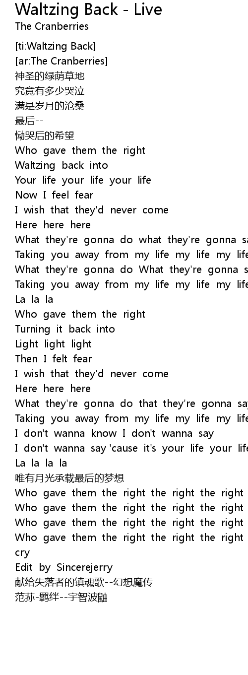 | [01:35.18] | I don't wanna say 'cause it's your life your life your life |