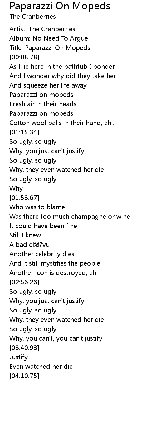 | [00:05.77] | Title: Paparazzi On Mopeds |