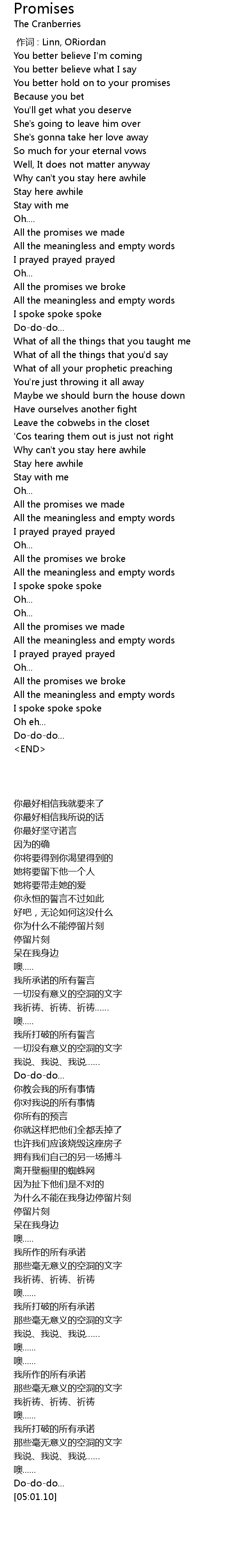 | [00:56.88] | You better hold on to your promises |