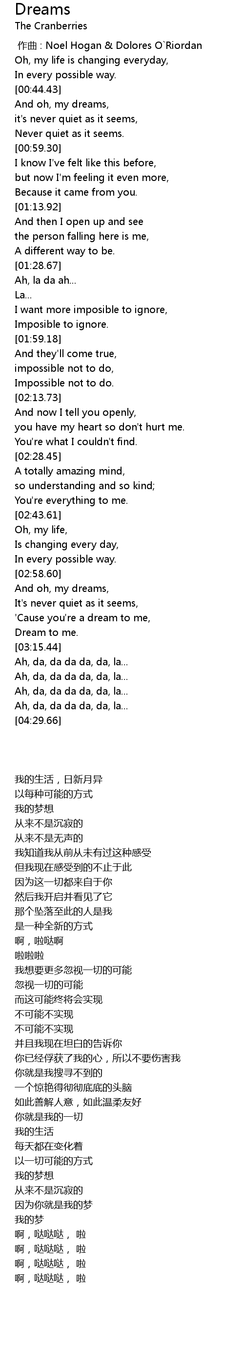 | [00:00.00] | zuo qu : Noel Hogan Dolores O Riordan |