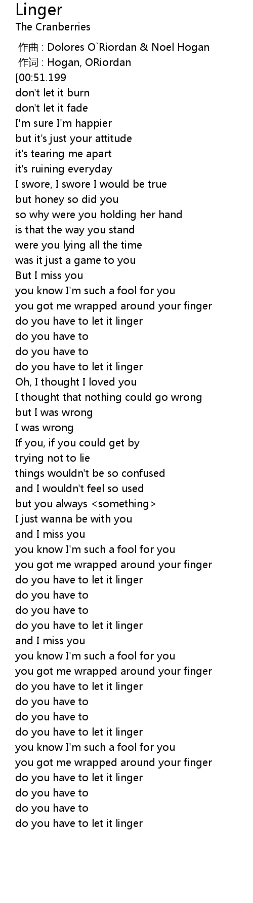 | [00:00.00] | 作曲 : Dolores O`Riordan & Noel Hogan |