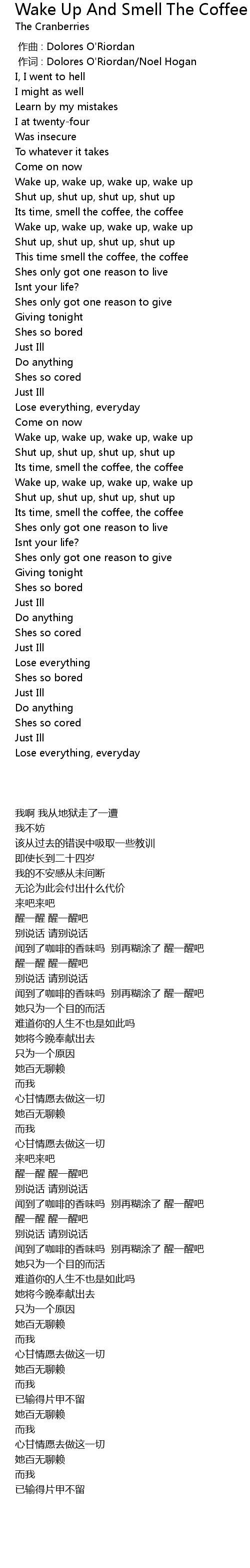 | [00:00.00] | 作曲 : Dolores O'Riordan |