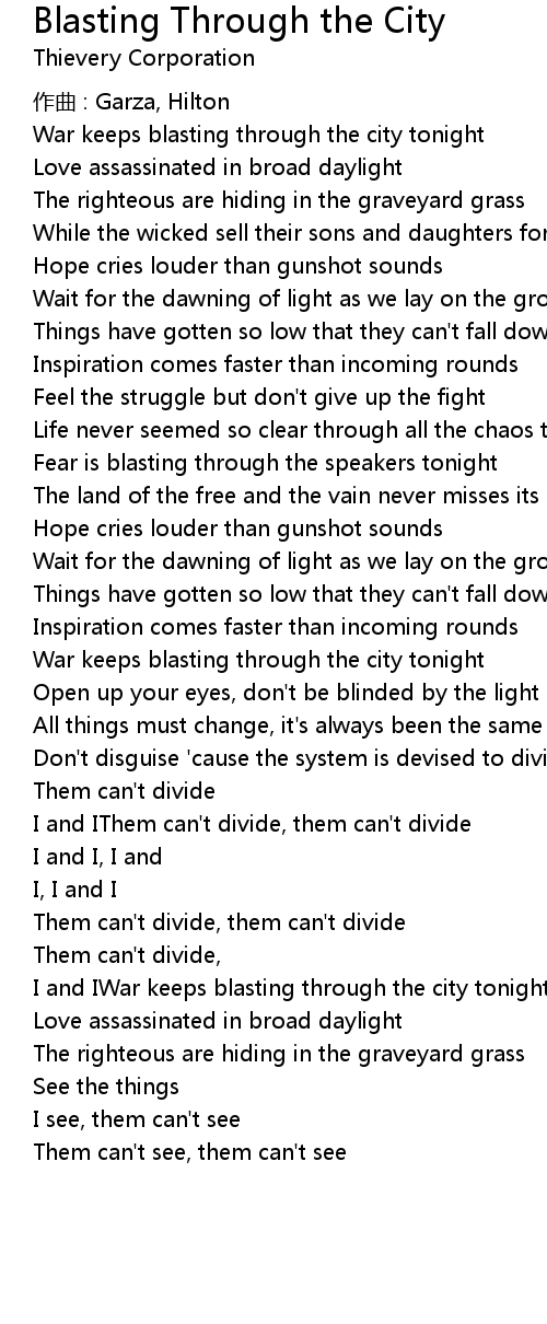 | I and IWar keeps blasting through the city tonight | |
