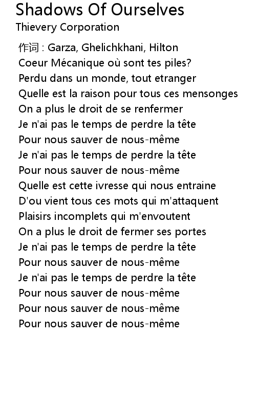 | [00:16.395] | Coeur Me canique ou sont tes piles? |