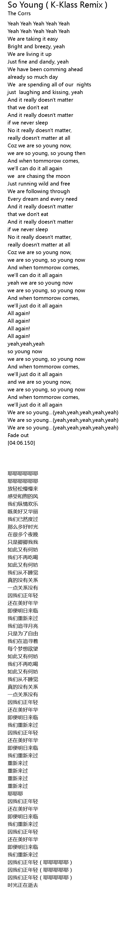 | [03:58.700] | We are so young... yeah, yeah, yeah, yeah, yeah |