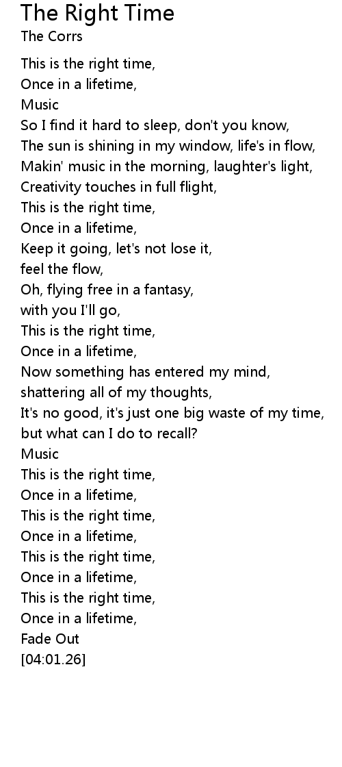 This is the right time, |
