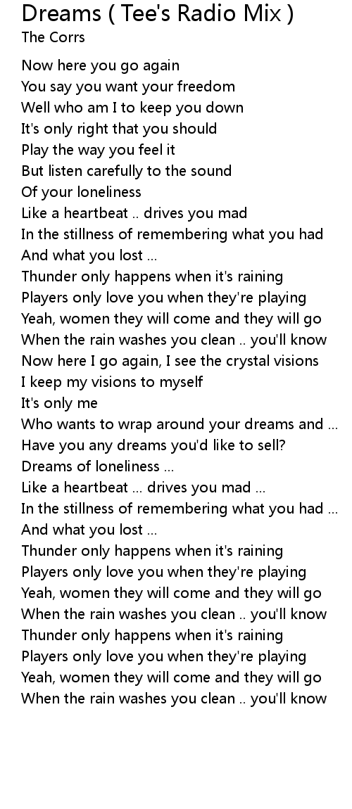 Dreams ( Tee's Radio Mix ) Lyrics