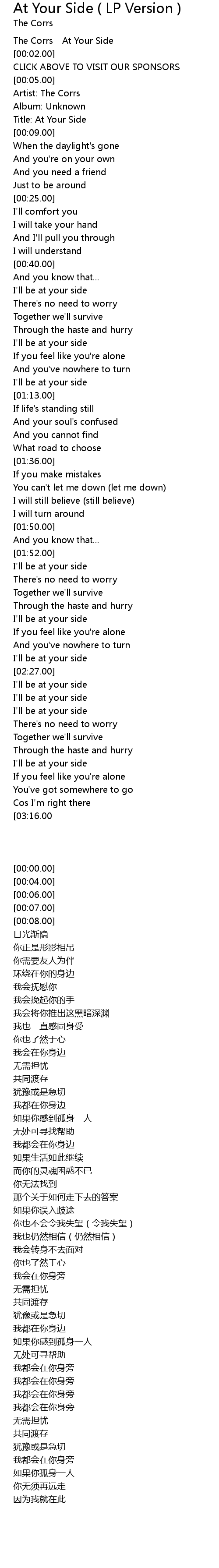 | [00:00.00] | The Corrs - At Your Side |