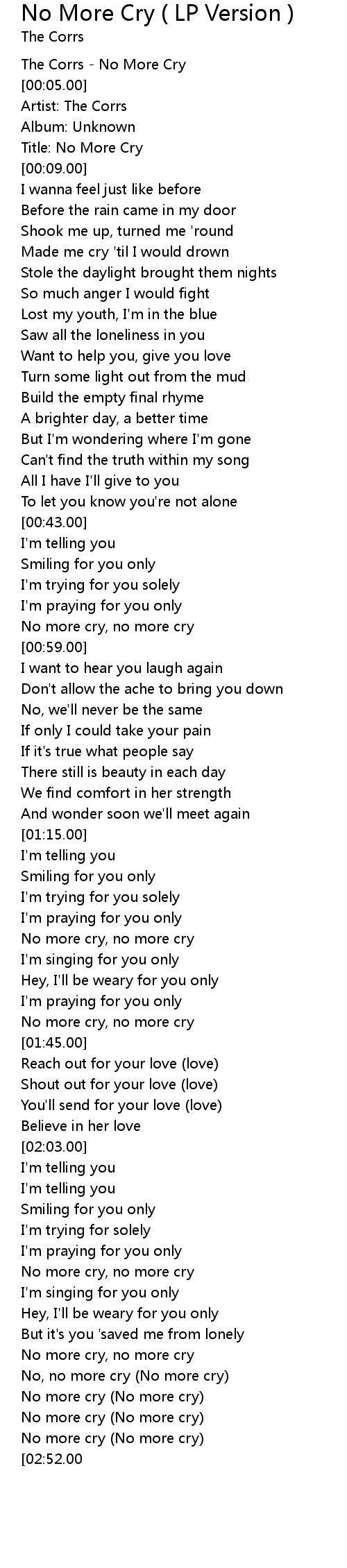 | [00:00.00] | The Corrs - No More Cry |
