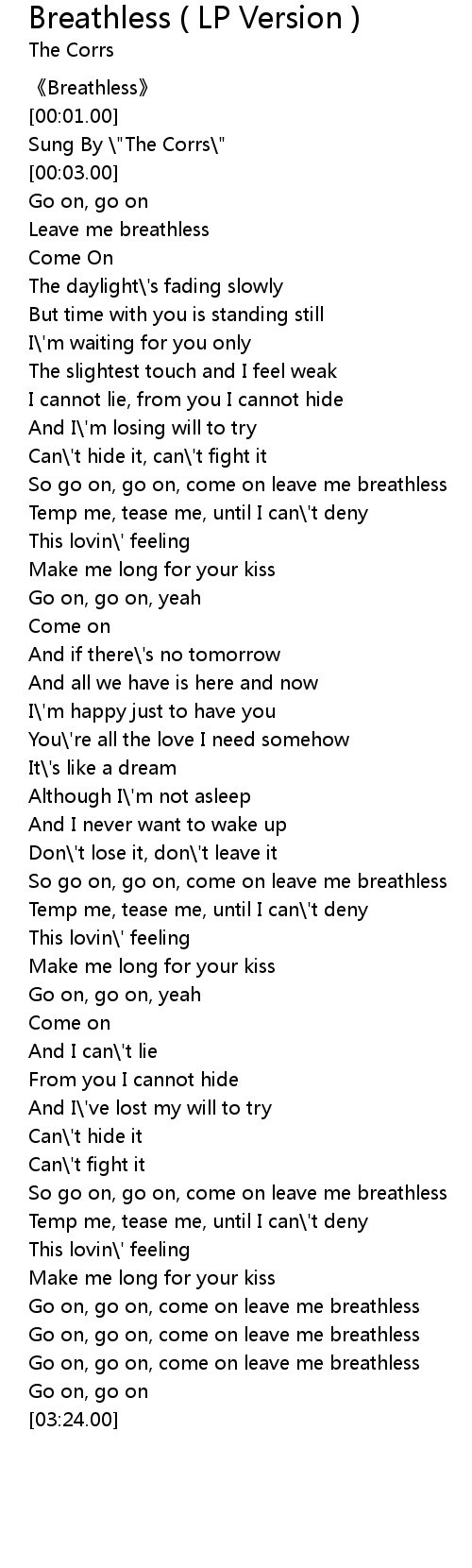 | [03:03.00] | Go on, go on, come on leave me breathless |
