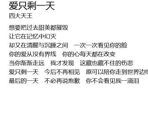 | 爱只剩一天 今后不再相见 原可以陪你走到世界边缘 | |