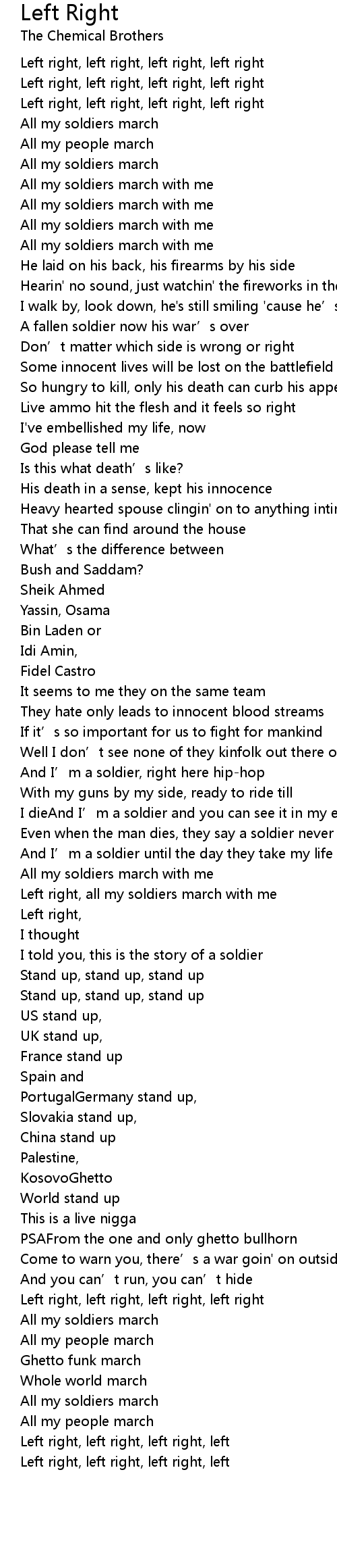 | Left right, left right, left right, left | |