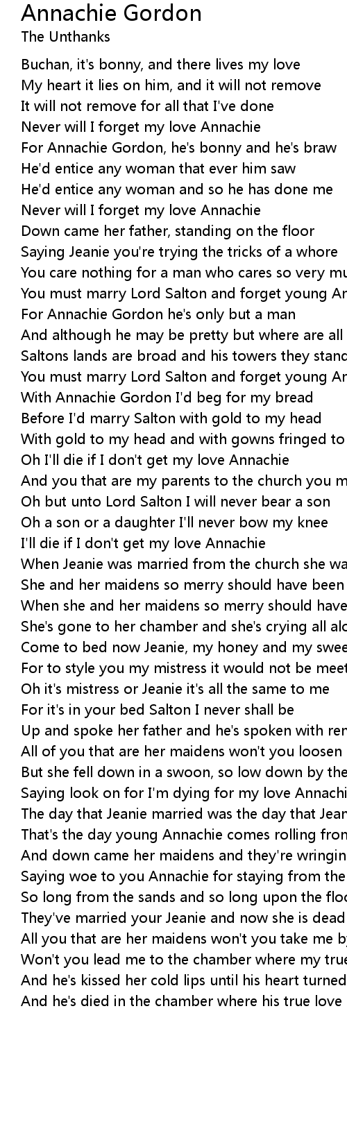 Annachie Gordon Lyrics