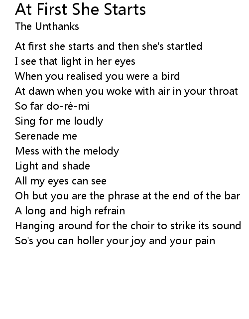 | Song | At First She Starts |