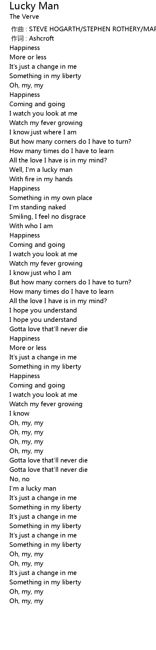 | [01:29.50] | Well, I'm a lucky man |