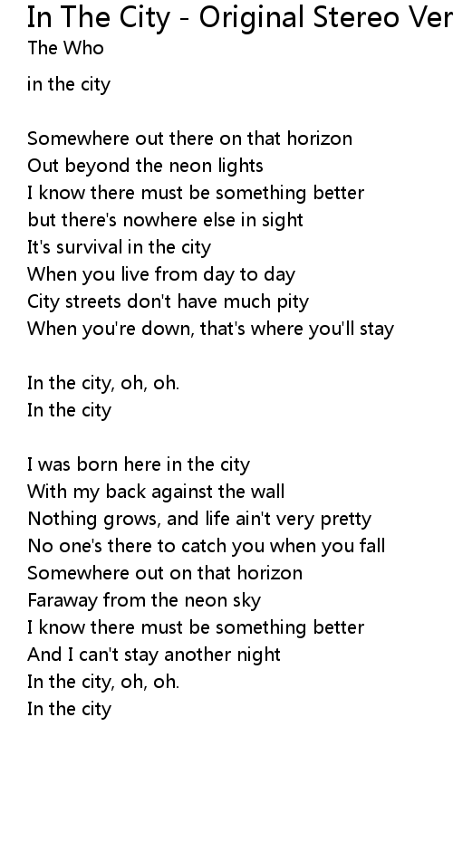 In The City - Original Stereo Version Lyrics
