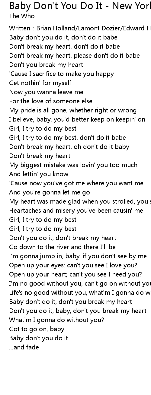 | Song | Baby Don't You Do It - New York Record Plant Session Full Version |