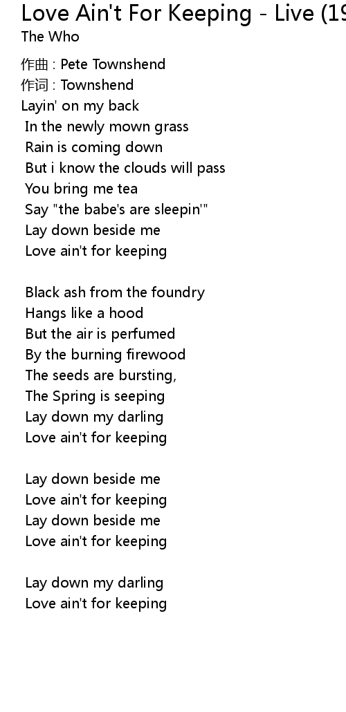 | Song | Love Ain't For Keeping - Live (1971 / Young Vic, London) |
