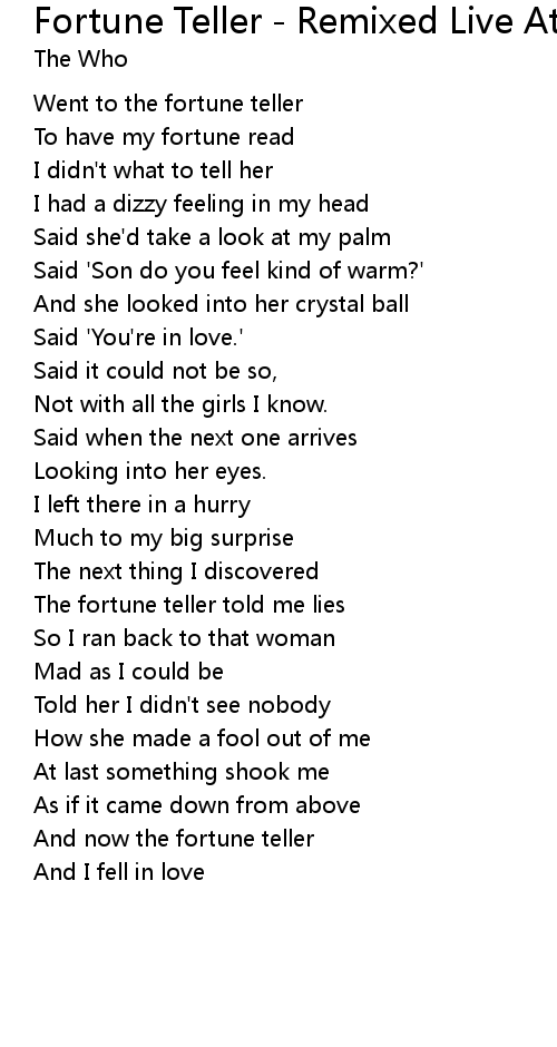 Fortune Teller - Remixed Live At Leeds Version Lyrics