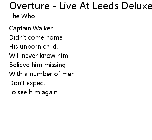 | Song | Overture - Live At Leeds Deluxe Edition Version |
