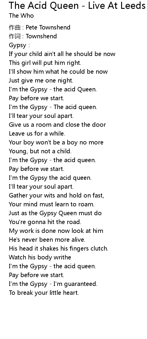 | I' m the Gypsy the acid Queen. | |