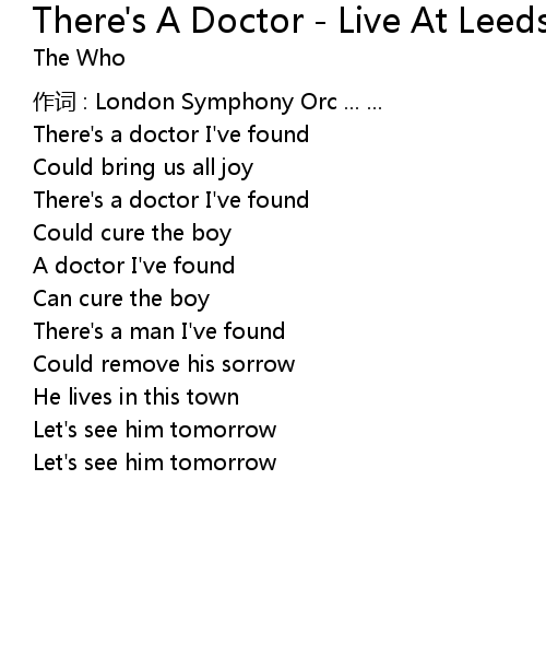 | Song | There's A Doctor - Live At Leeds Deluxe Edition Version |