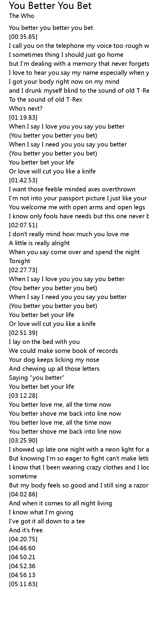 [05:04.18][04:52.36][04:40.56][04:28.67] When I say I need you you say you better