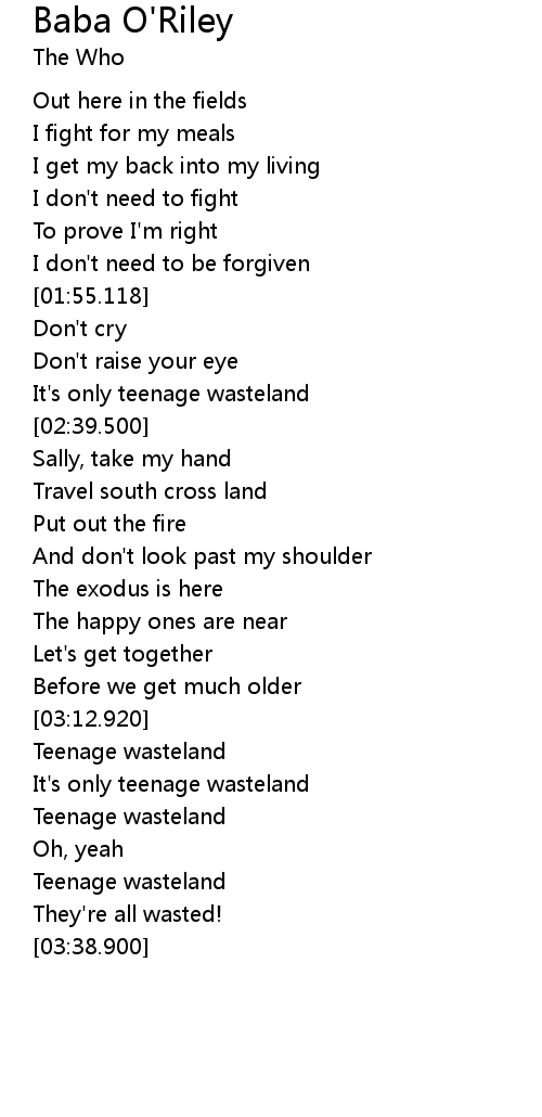 | [03:27.710] | Teenage wasteland |