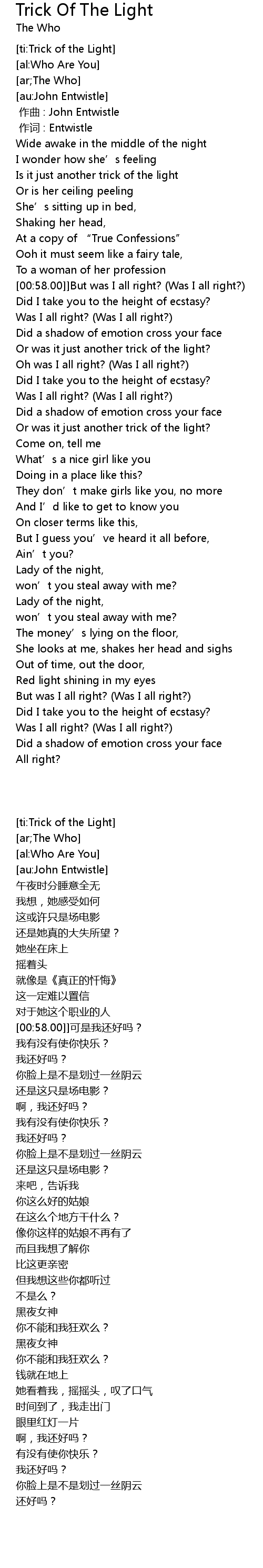 | [00:00.00] | zuo qu : John Entwistle |