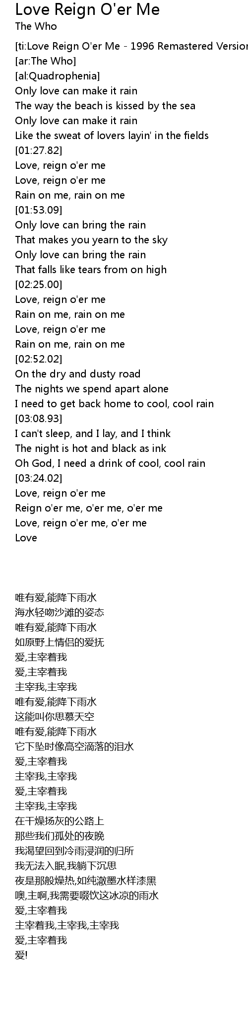 [ti:Love Reign O'er Me - 1996 Remastered Version] |