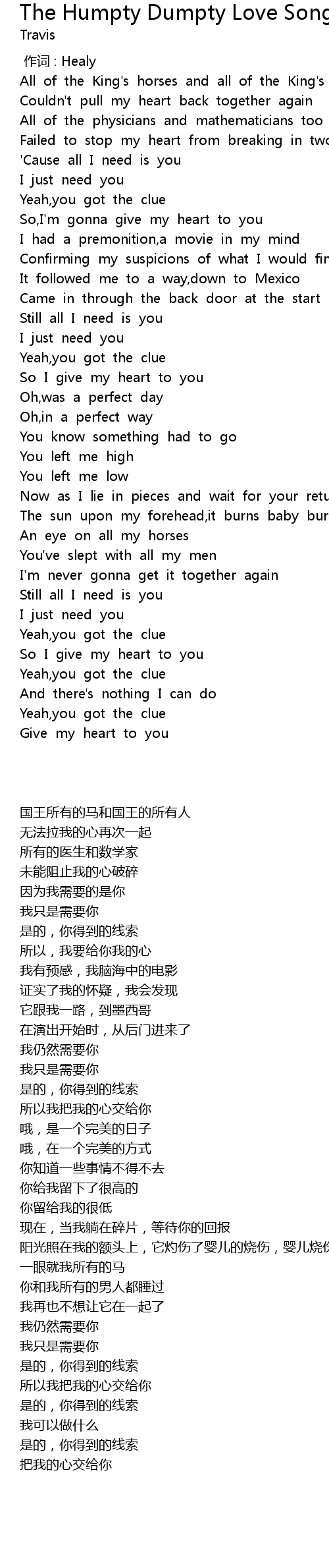 | [00:32.958] | All of the King' s horses and all of the King' s men |