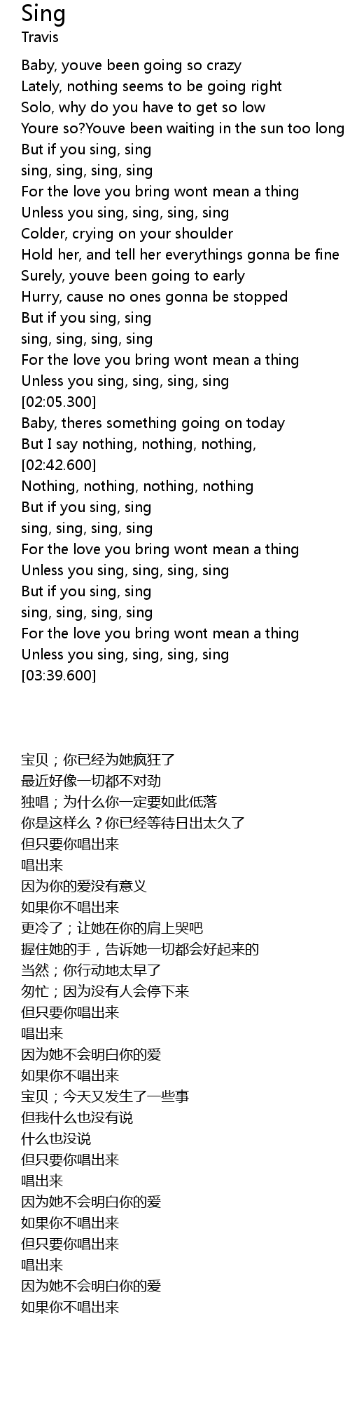 | [03:34.600] | Unless you sing, sing, sing, sing |