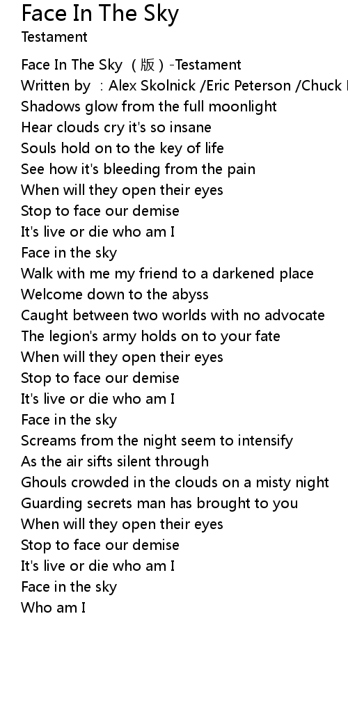 | [00:00.00] | Face In The Sky ban Testament |