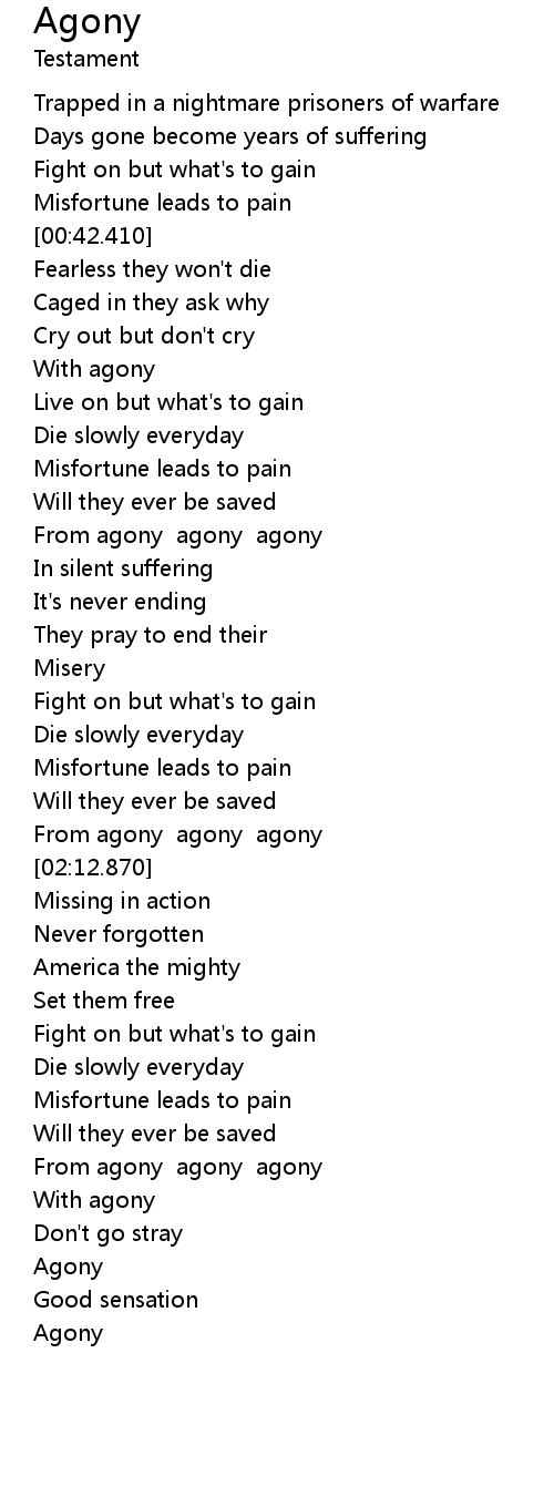 From agony agony agony |