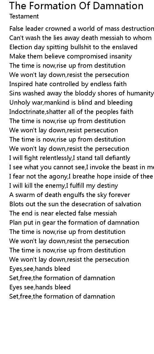 The Formation Of Damnation Lyrics