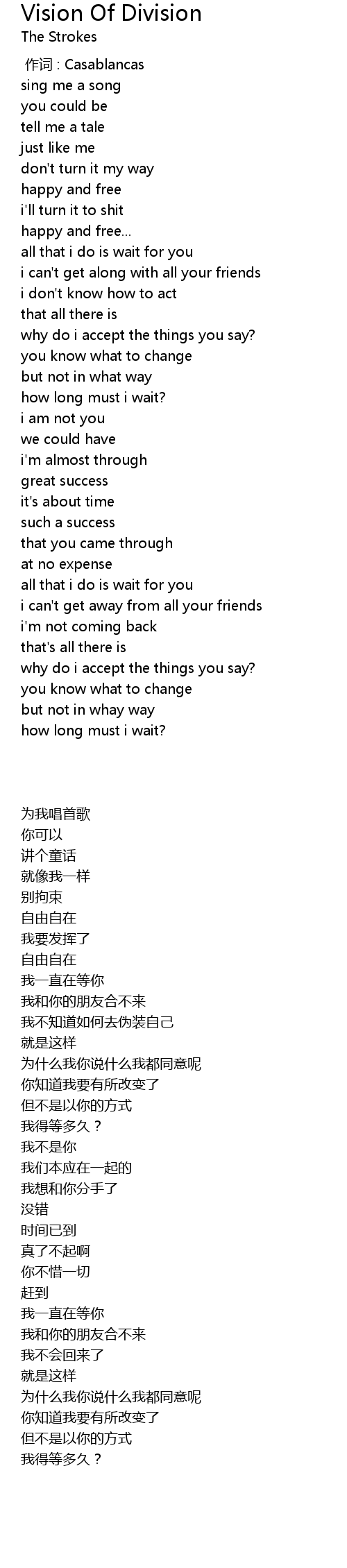 | [00:00.00] | 作词 : Casablancas |
