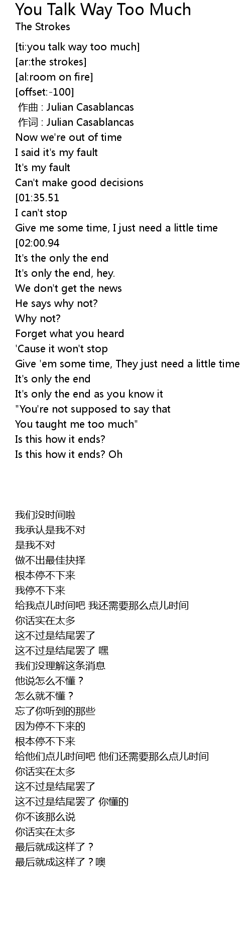 | [00:00.00] | 作曲 : Julian Casablancas |