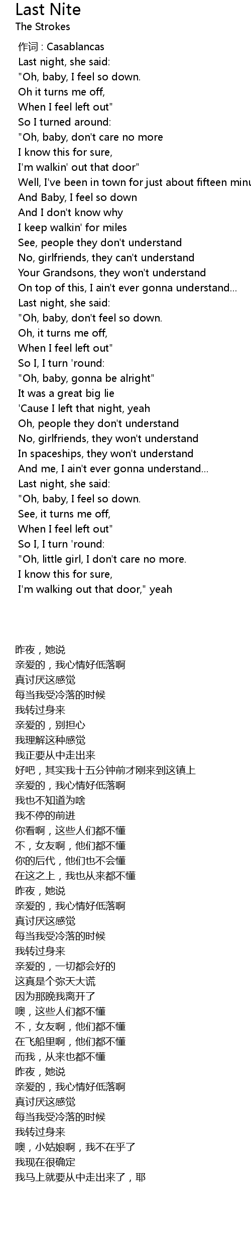 | [00:00.00] | 作词 : Casablancas |