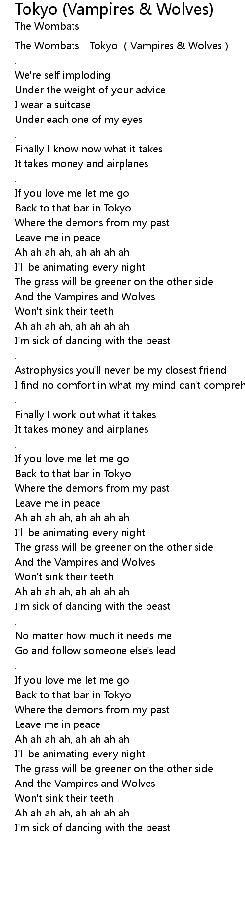 | [00:00.34] | The Wombats - Tokyo (Vampires & Wolves) |