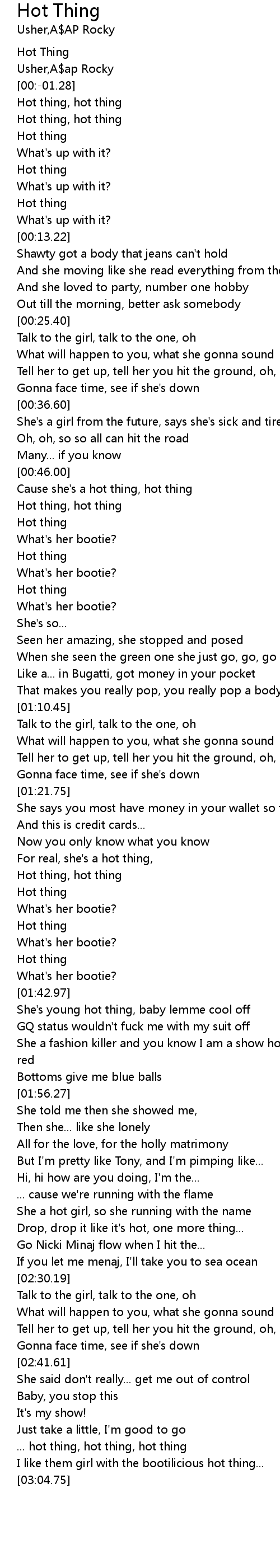 ... hot thing, hot thing, hot thing |