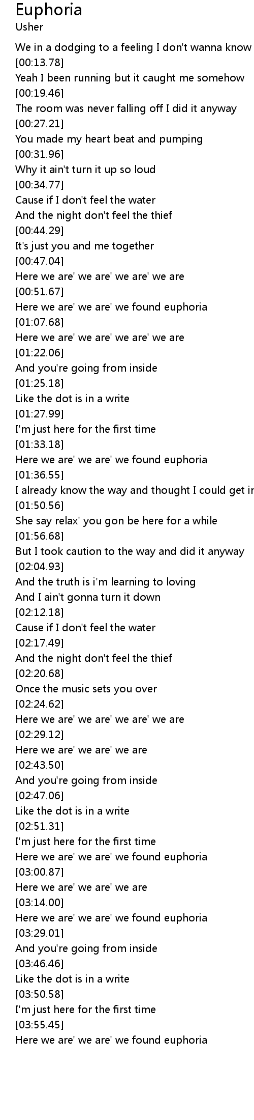 Here we are' we are' we found euphoria |